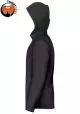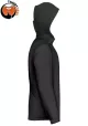 - Detalles decorativos en mangas y capucha